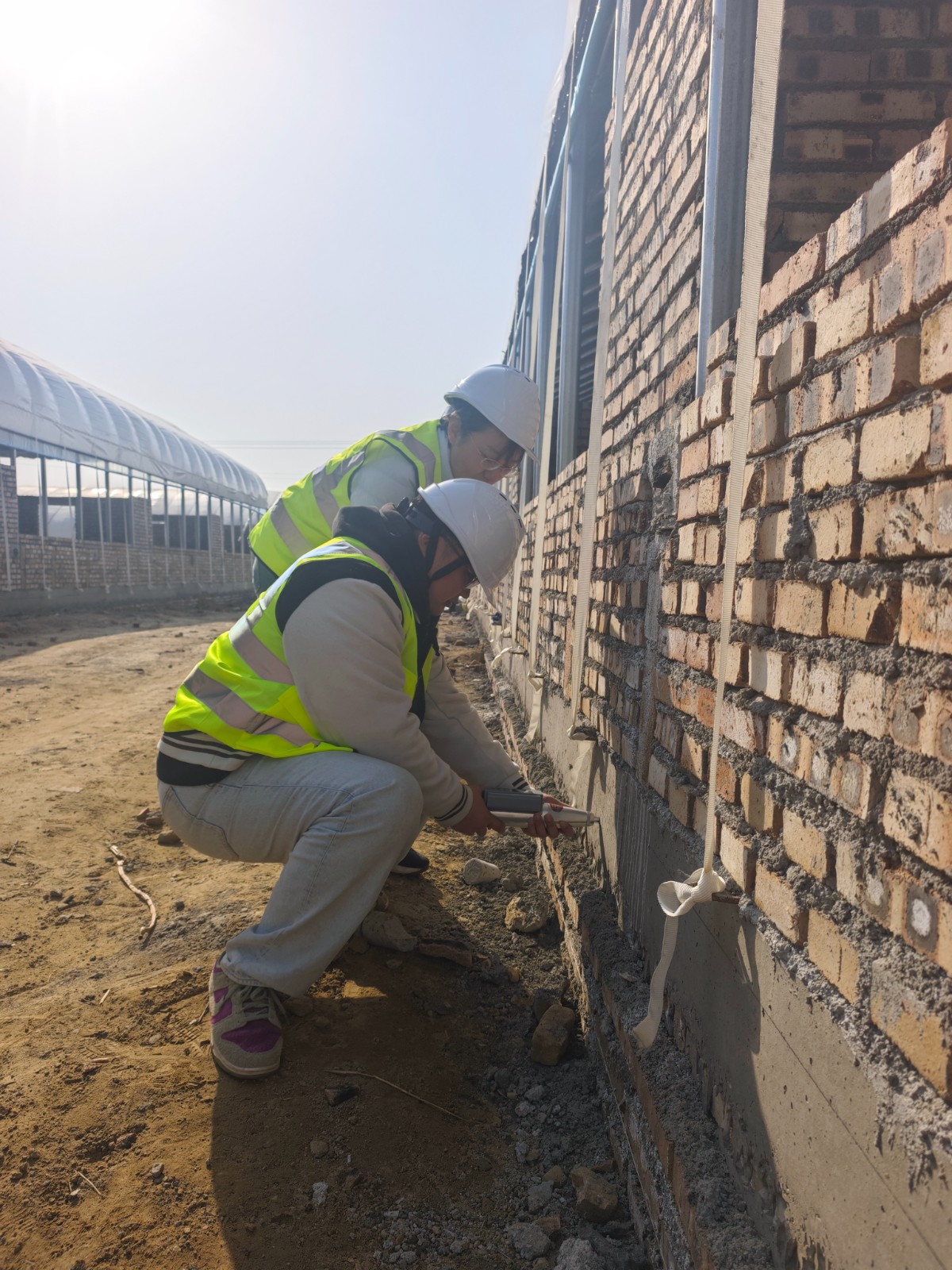 在项目现场,我院技术团队坚持问题导向与需求导向,聚焦养殖大棚建设的核心技术环节开展全面细致的检测指导。团队成员运用水准仪对大棚钢结构立柱定位进行精准高程校准,确保结构布局科学合理;通过回弹仪专业测定墙体混凝土强度,严把工程质量安全关。同时,针对基础施工中的细节问题,技术人员结合自身专业知识与工程实践经验,提出一系列标准化优化建议,既保障项目完全符合安全建设标准,又充分适配养殖大棚的实际实用需求,为项目建设提供了有力的技术支撑。